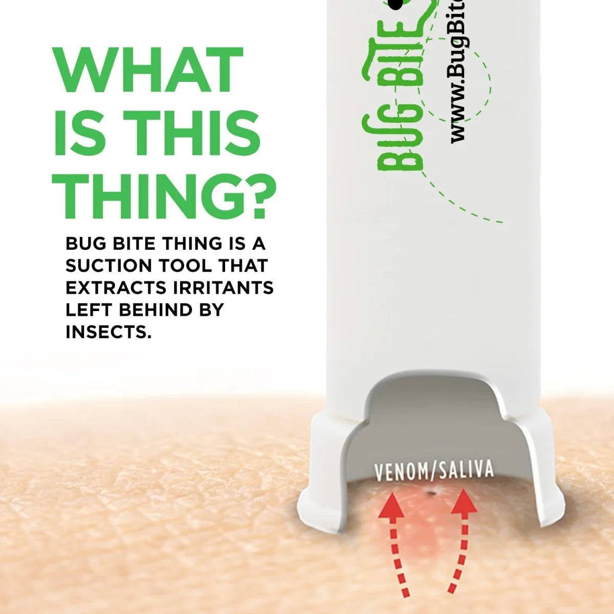 When certain insects bite or sting you, they leave behind their saliva or venom just under the surface of the skin. This may cause your body to react. The Bug Bite Thing is a SUCTION TOOL that extracts the irritant and helps alleviate the itching, stinging, and swelling that occurs with bug bites and stings.
